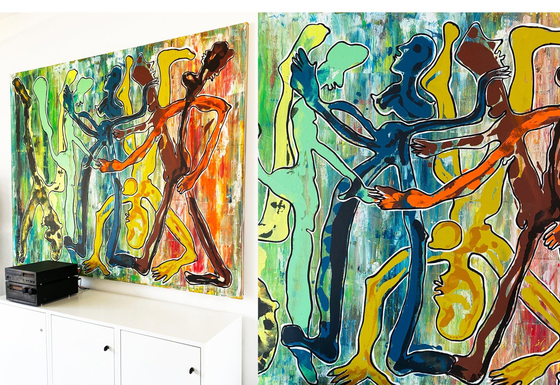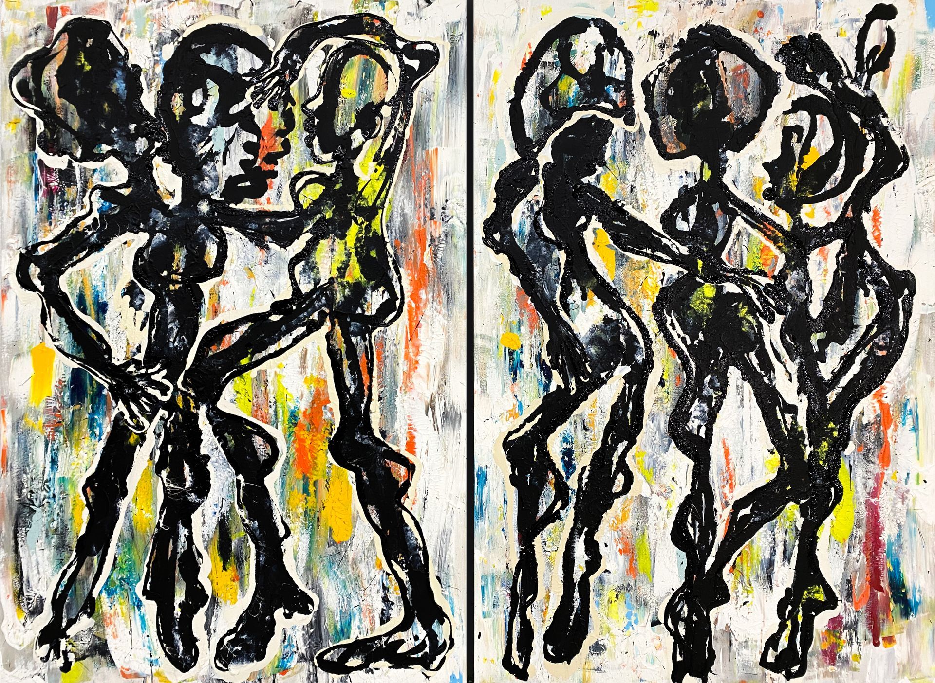 Acrylic paint and oil crayon on canvas: 2x (W)40cm x (H)170cm