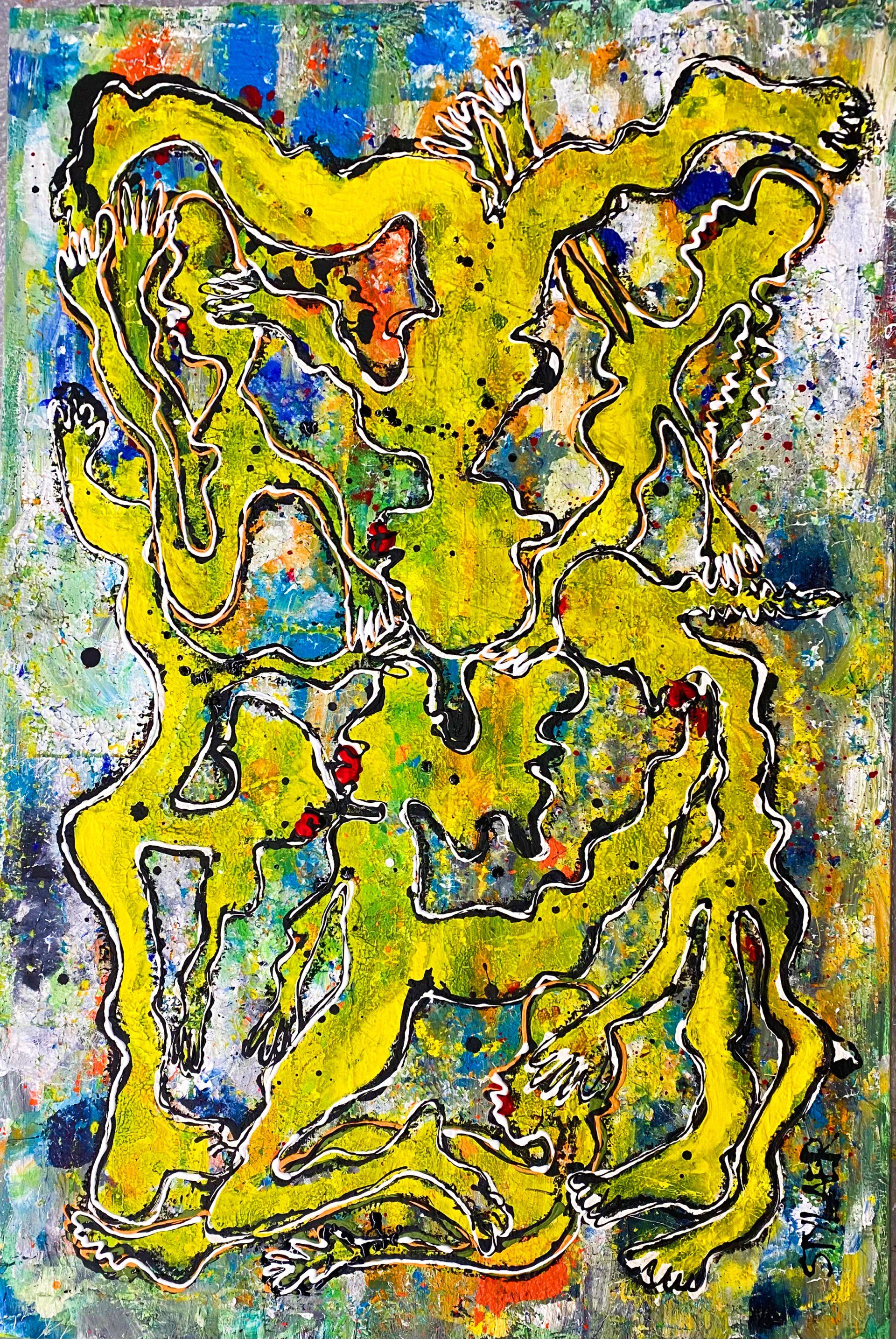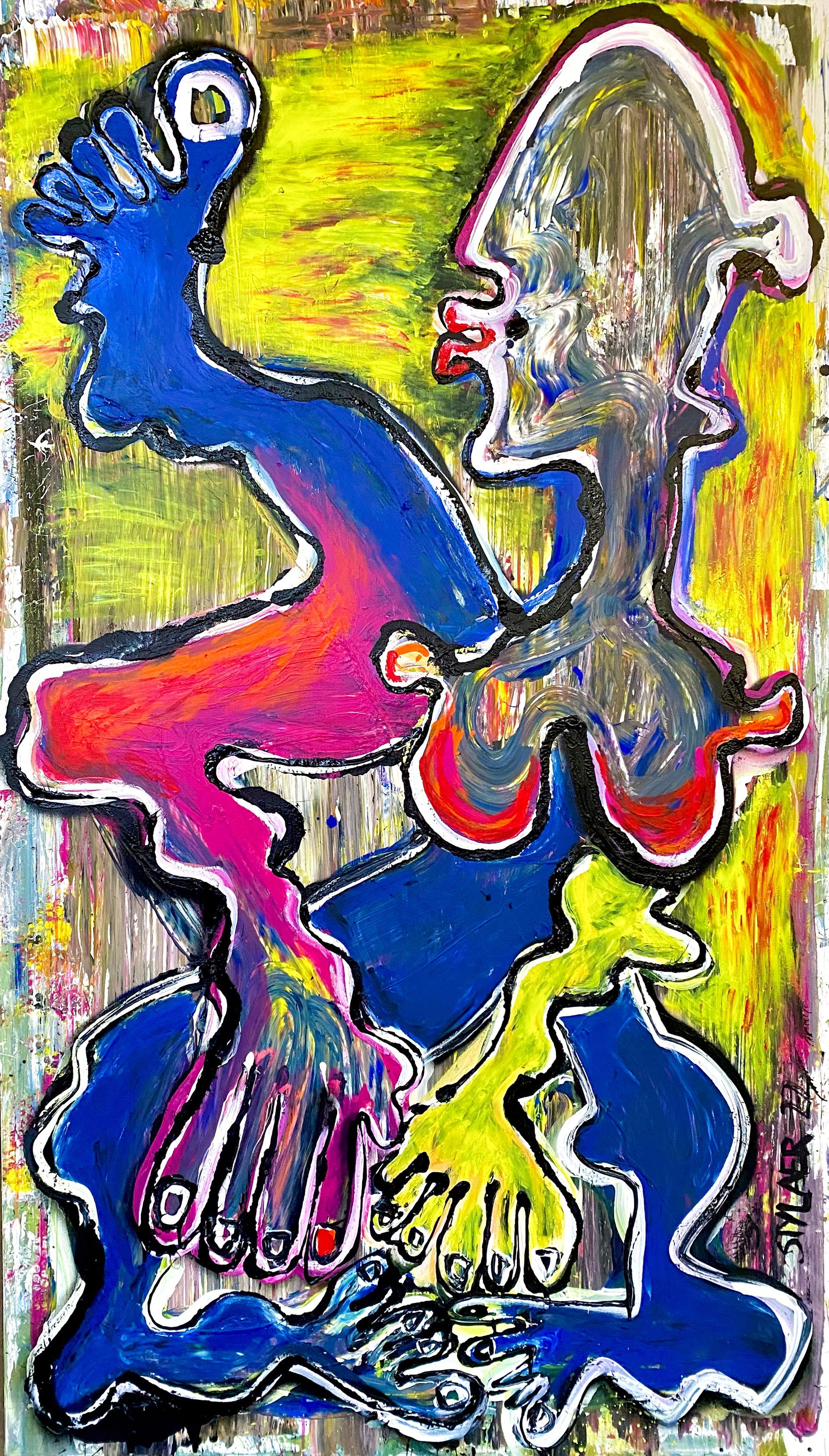 Acrylic paint and oil crayon on linen canvas: (W)100cm x (H)150cm