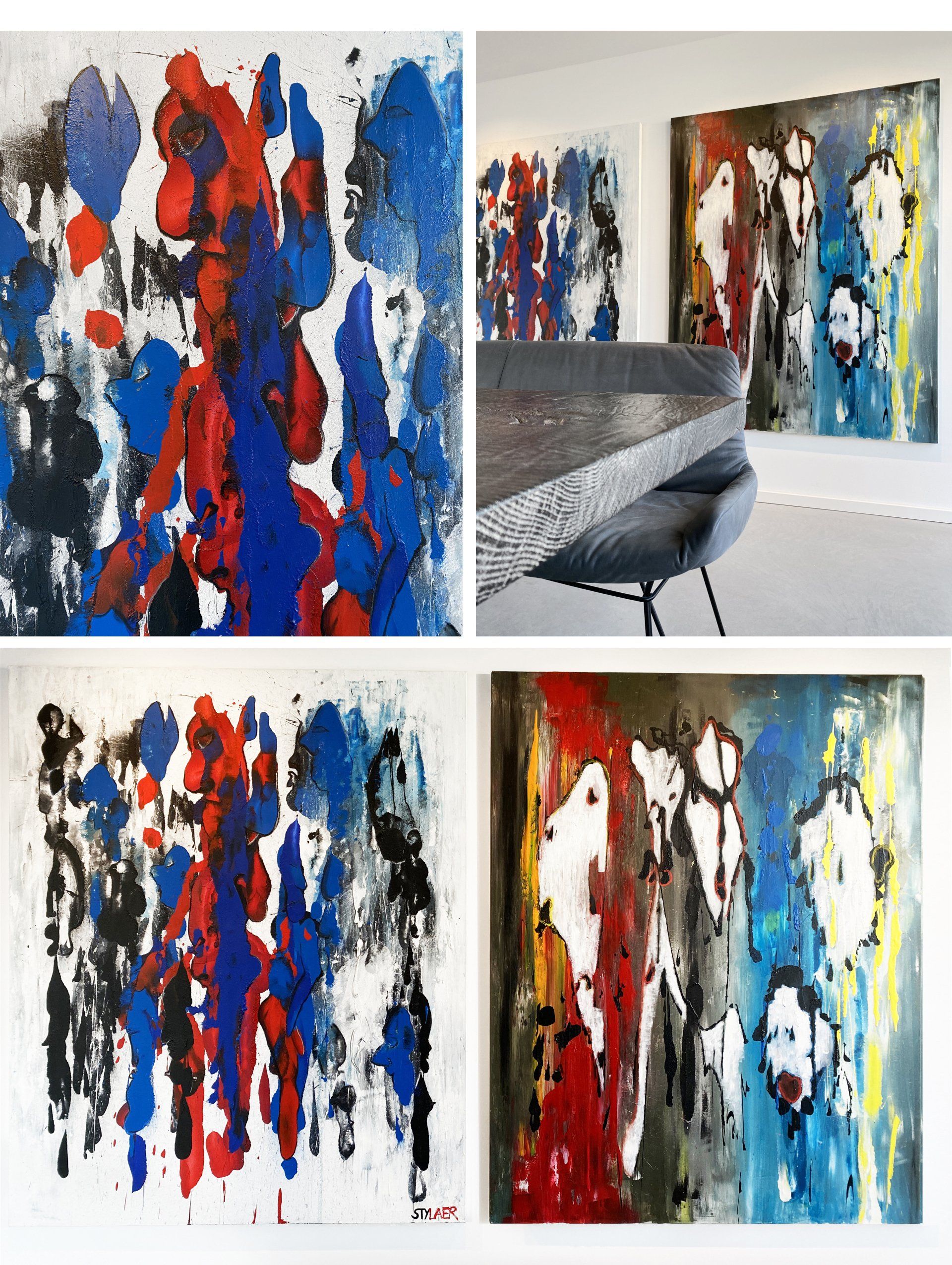 Gouache, acrylic paint and oil crayon on linen canvas: 5x (W)40cm x (H)60cm